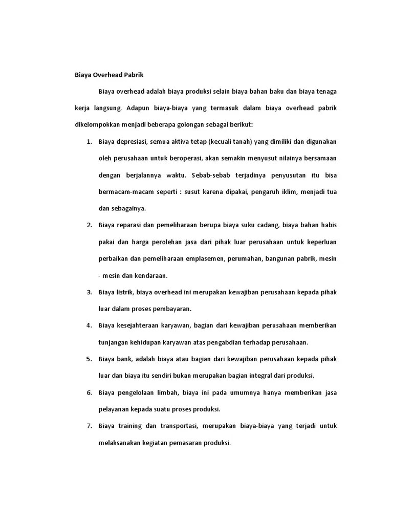 = 40% x rp 20.000. 24/07/2020 · adalah biaya overhead pabrik manfaatnya dinikmati oleh lebih dari satu departemen. Misalnya seperti beban penyusutan gedung pabrik yang didistribusikan ke departemen produksi. Berikut ini adalah tahap yang harus dilalui dalam perhitungan tariff biaya overhead pabrik, kecuali: Untuk merencanakan besarnya dana yang harus dianggarkan untuk.